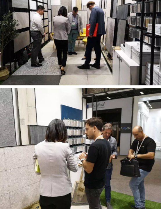 此次參展,天欣科技×佛諾倫莎瓷磚,攜眾多代表行業(yè)水平的工藝和產(chǎn)品亮相國(guó)際市場(chǎng),以多色多面多質(zhì)感現(xiàn)代仿古磚代表工藝開(kāi)發(fā)的2019春季新品、2cm厚磚、水磨石、水泥磚系列為代表,贏得了國(guó)際市場(chǎng)的專(zhuān)業(yè)認(rèn)可。