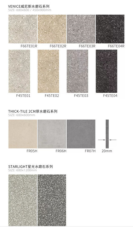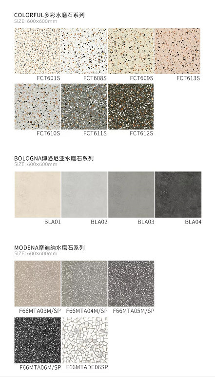 5、設(shè)計(jì)理念:2019春季,佛諾倫莎隆重推出900×900mm、600×1200mm兩大黃金規(guī)格系列新品,通過(guò)多色多面多質(zhì)感的設(shè)計(jì)手法,采用5V工藝和特質(zhì)的釉料配方,傾力打造集拋光面、柔光面、半拋面、自然啞光面四種不同的表面質(zhì)感產(chǎn)品,花色以大理石紋為主,同時(shí)涵蓋水泥質(zhì)感、水磨石等,顏色以不同深度的灰色為主,同時(shí)搭配經(jīng)典的米黃色、大地色等,整體風(fēng)格現(xiàn)代簡(jiǎn)約,適應(yīng)各種空間的不同風(fēng)格應(yīng)用,以滿(mǎn)足FRLS現(xiàn)有[工程 · 出口 · 家裝 · 設(shè)計(jì)師]渠道的需求。