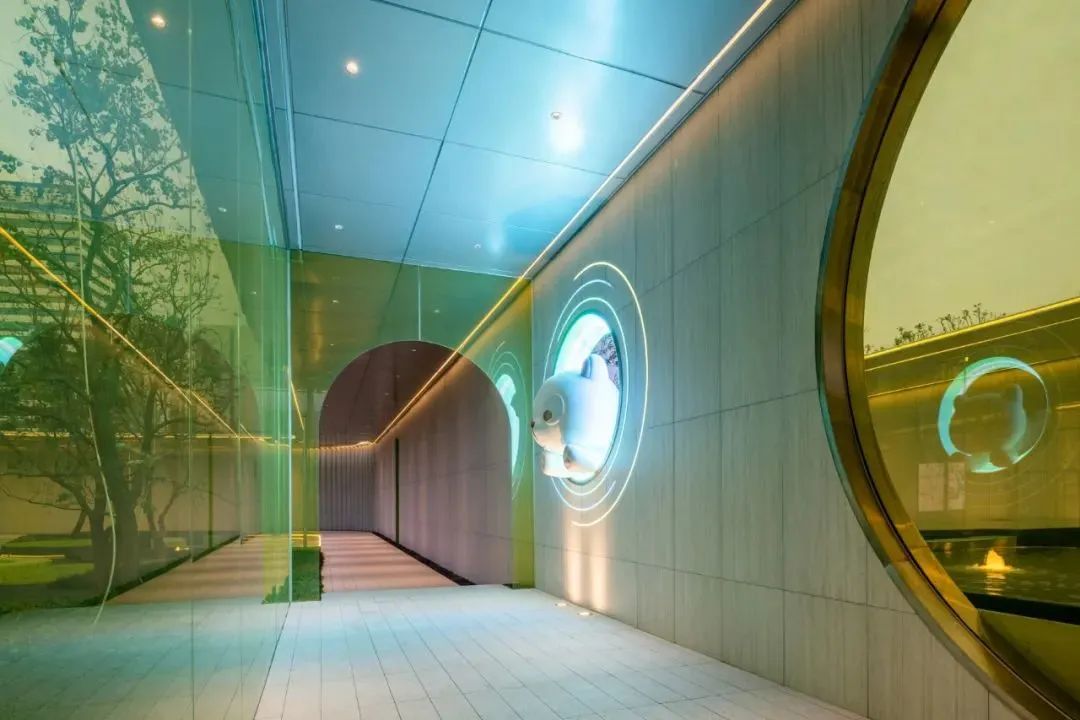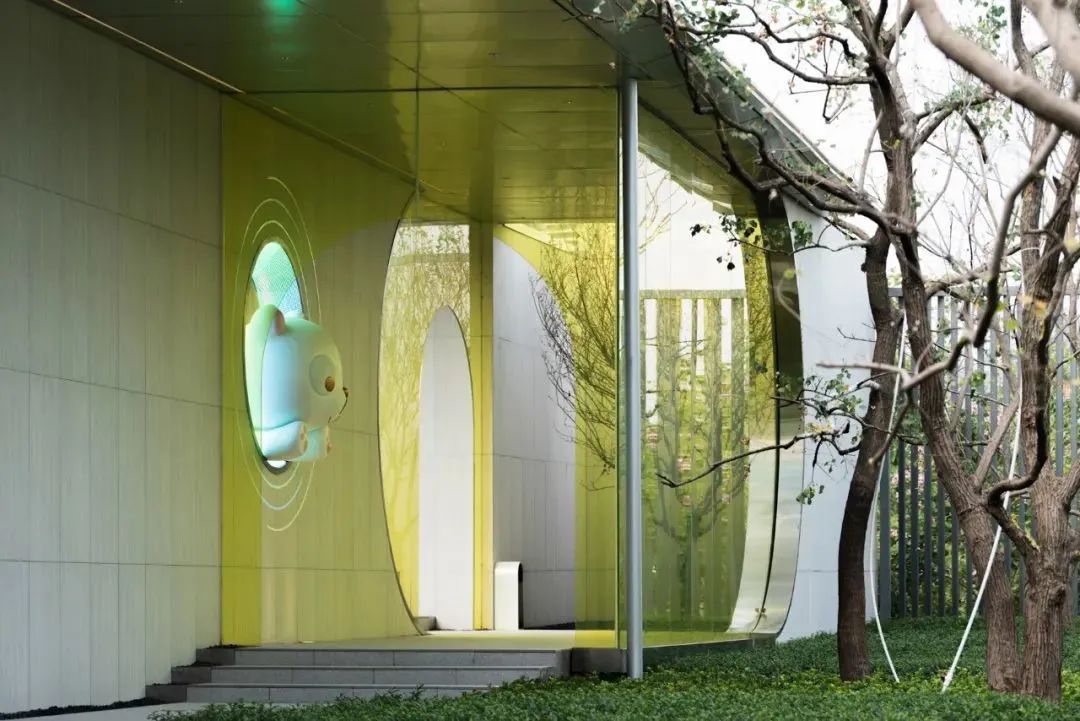 要說(shuō)最吸睛,最彰顯出年輕而前衛(wèi)的審美品味的,莫屬于青黃色拱形玻璃立板,打破了傳統(tǒng)庭院的莊重和嚴(yán)肅,而添置的小熊形象,更是增添了無(wú)窮的趣味,充滿(mǎn)了設(shè)計(jì)考量。有活力且向公共開(kāi)放的高品質(zhì)商業(yè)建筑,表達(dá)獨(dú)特的美學(xué)追求與鮮明個(gè)性。