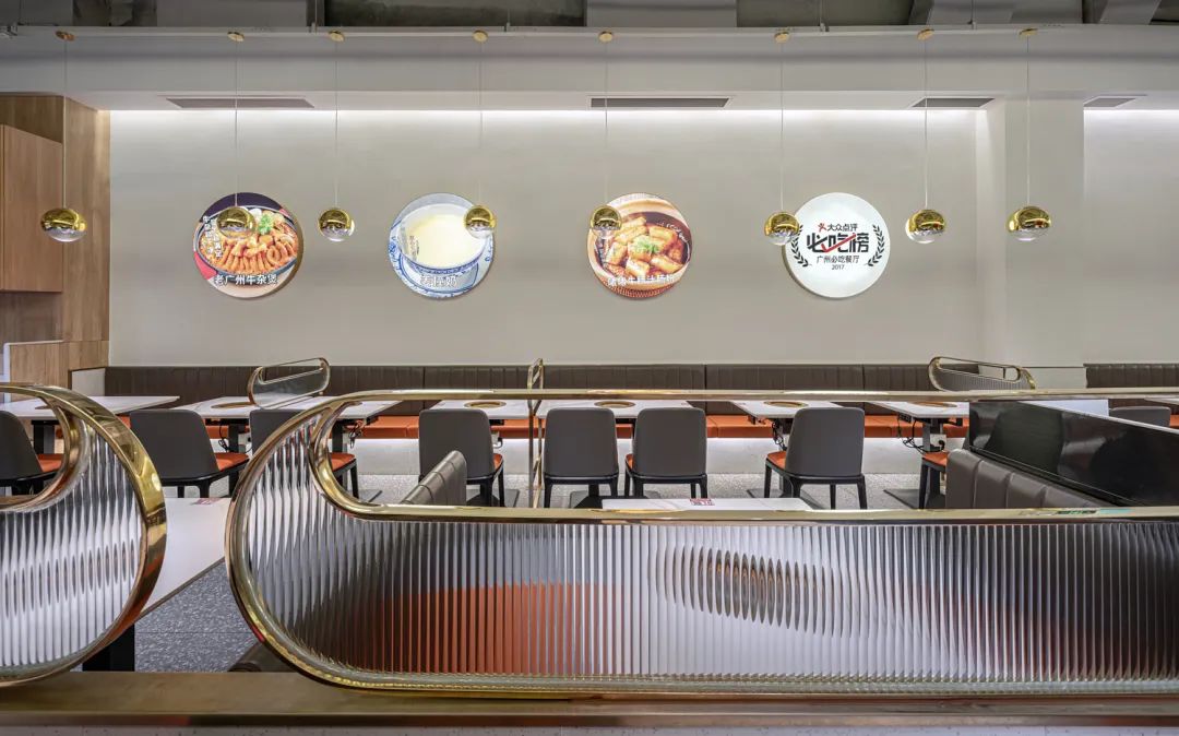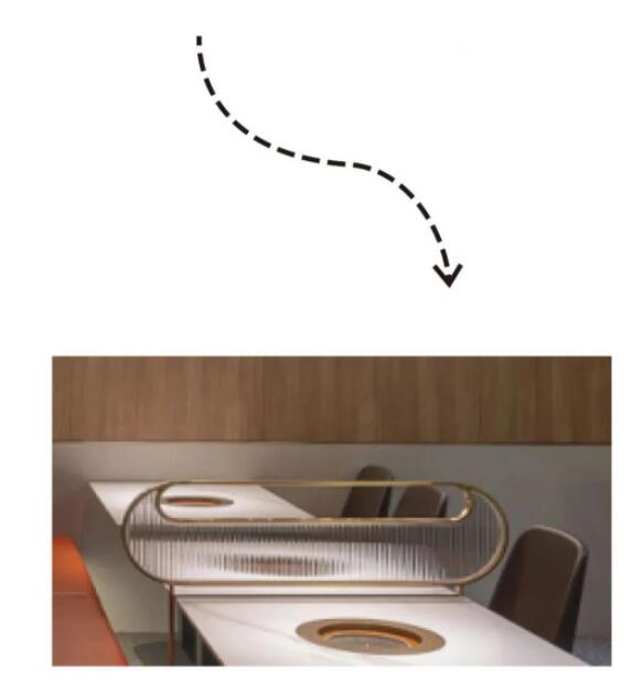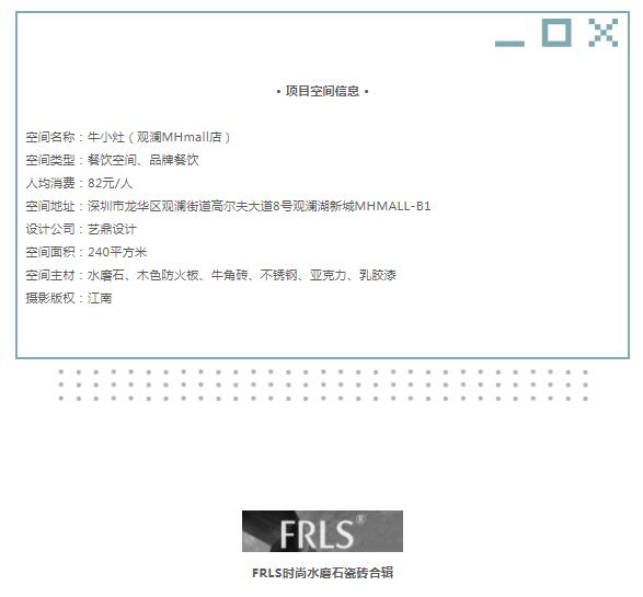 本案空間為長條形空間布局,Mo?意大利灰時(shí)尚水磨石的溫潤打底,在自然光和人工照明的配合下,具有的儀式感和藝術(shù)感。木色防火板提升空間溫度,牛角造型隔斷讓用餐變得精致有趣,不銹鋼配亞克力的架構(gòu)則注入絲絲硬朗風(fēng),陣列的牛角磚更是空間和品牌文化的又一次呼應(yīng)……